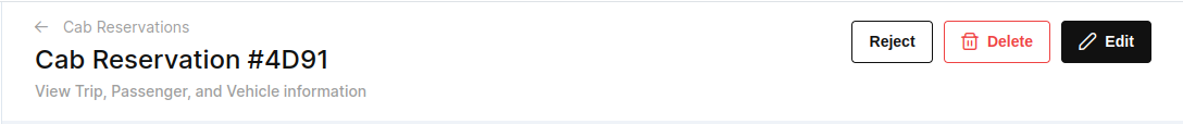 - Reservations show who made the booking, where the cab will pick up and drop off, the departure time, and the status of the trip.