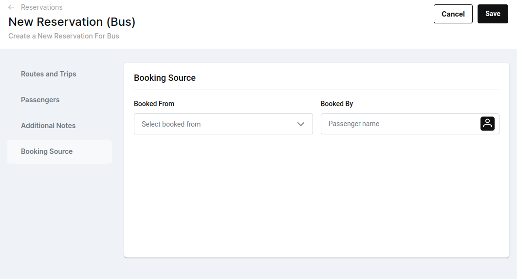 • Booked from: The source from which the reservation was made, like an app or dispatch panel.